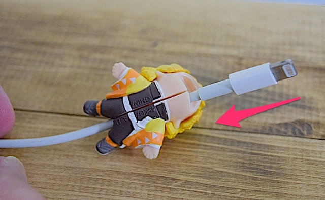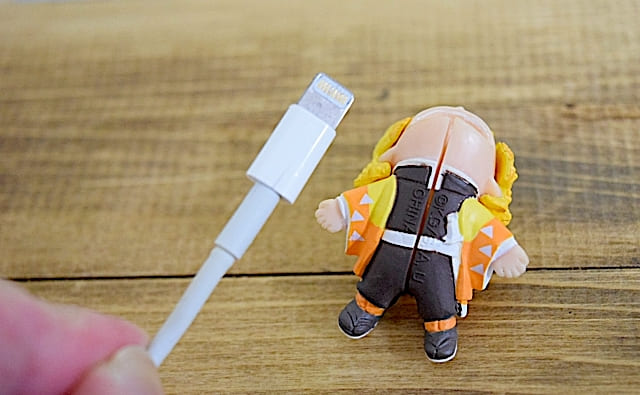 Lightningケーブルを通してから端子を善逸の口へ取り付けるために引っ張ると取り付けやすいと思います。